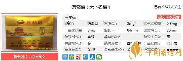 黃鶴樓天下名樓煙支長84mm,屬于細(xì)支煙,只唯細(xì),不唯長,這似乎在淡化細(xì)支煙的“女士煙”身份標(biāo)簽,讓消費(fèi)者不把黃鶴樓天下名樓當(dāng)成“女士煙”來看待。下面我們一起來看黃鶴樓天下名樓的參數(shù)信息:焦油量:8mg 煙堿量:0.8mg 一氧化碳量:8mg