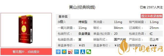 煙氣細膩柔和,成團性好,香氣質(zhì)較好,較優(yōu)雅,透發(fā)性好,香氣量較充足,協(xié)調(diào)性好,口感較好,余味舒適。上市以來很受消費者的歡迎,只是如今歸于黃山旗下也不知是否已停產(chǎn),早聽聞是款好煙可惜難覓蹤跡。經(jīng)香煙網(wǎng)小編市場調(diào)查黃山經(jīng)典皖煙售價為65元/包。