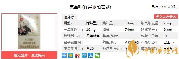 以上便是由香煙網(wǎng)小編為大家介紹的關(guān)于黃金葉許昌水韻蓮城價格 水韻蓮城口感及參數(shù)介紹的相關(guān)信息,想要了解更多有關(guān)內(nèi)容請點擊:非賣版12支裝低焦油中華香煙包裝欣賞及口感測評