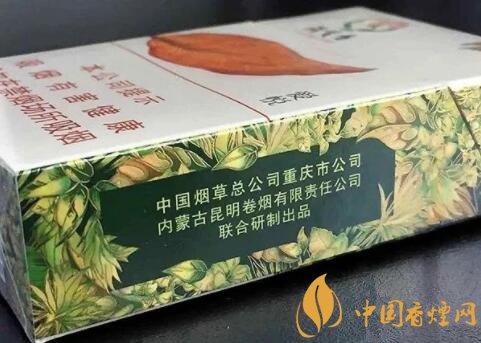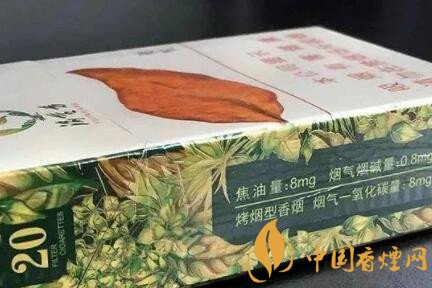 看名字,就能猜出個大概,這是重慶煙。只是煙盒正面圖案上一片大大的煙葉,卻令我不由得想到了“黃金葉”這個品牌。煙盒正面色調(diào)為乳白色又滲進(jìn)了些淺綠色,整體為淺綠色,預(yù)示著這款香煙口味應(yīng)該偏淡。側(cè)面的理化指標(biāo)為8mg,也說明了這一問題。