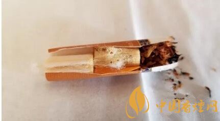 煙絲從外觀上檢視,由棕黃和明黃煙絲組成,品級不錯。煙絲切寬1mm左右。間雜切成細(xì)小圓片裝的煙梗。用料還是比較考究的。