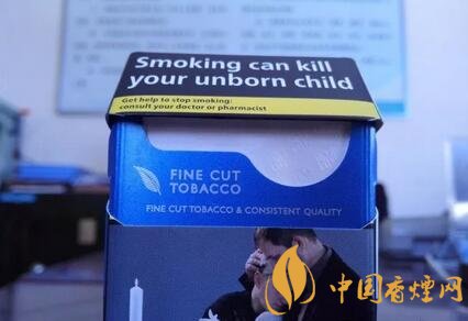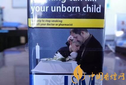 與歐盟警示圖片版本的萬(wàn)寶路一樣,因?yàn)榫緢D片內(nèi)容印制于煙盒的正反兩面,英文警示語(yǔ)句,只能位移于煙盒的左右兩側(cè)。