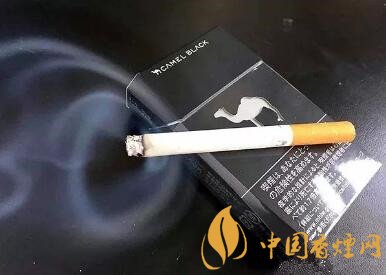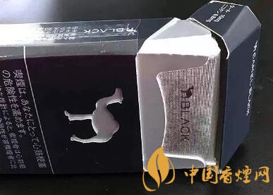 煙盒正面的圖案非常簡單,大面積黑色的基調(diào),中間一只鏤空的駱駝。煙盒下方,是日文的警示語。