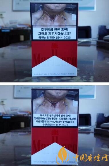韓國的警示圖片,這是第一次見識到。警示圖文的設計,也與歐美等樣式差不多。都是圖片、吸煙有害健康,以及控煙熱線等內(nèi)容。從圖片的樣式來看,與東南亞一些國家和地區(qū)差不多,看起來還不算過于恐怖和惡心。