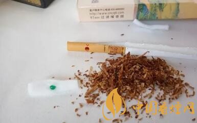 拆開(kāi)一根煙,煙絲雖然非常的細(xì)小,但是大小還算規(guī)整。煙嘴內(nèi)的包裝是綠色的,聞起來(lái)有一股香味,淡淡的甜。