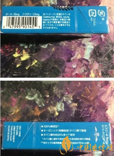 煙盒背面有一通日文介紹,大致說(shuō)明了本煙草百分之百無(wú)添加的制作工藝,并對(duì)煙草進(jìn)行了優(yōu)良的培育。