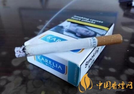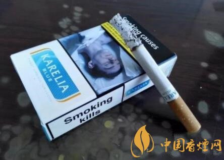 煙的名字,是KARELIA,我稱其為卡瑞利亞。當(dāng)然,網(wǎng)上也有其它的譯法。這是一款產(chǎn)自歐洲希臘的免稅版本香煙,BLUE藍款。由此看來,至少還有RED紅款的存在。許多混合型品牌香煙,諸如L&M、云絲頓等,都有紅藍款的樣式。紅款為濃郁的原味,藍款為清雅的特醇味道。