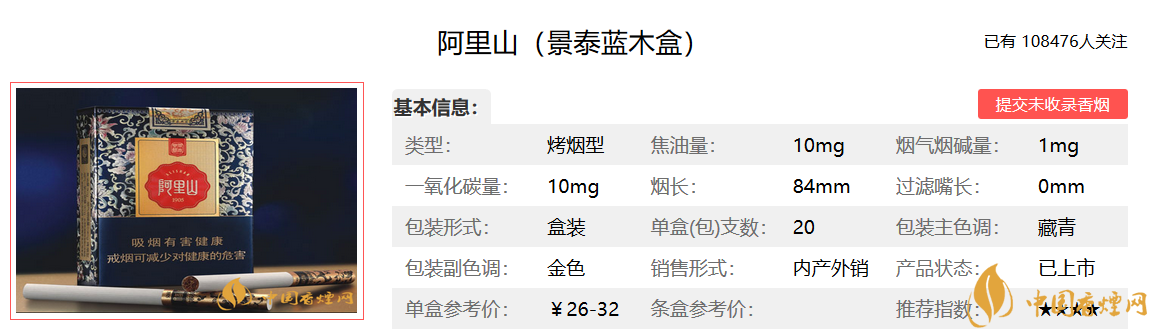 阿里山景泰藍香煙還行,雖有10毫克的焦油含量,但不嗆喉,有一絲的清香,煙草味很好。