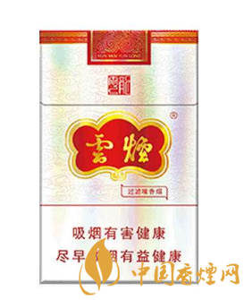 4、云煙(云龍),價格:16元/包。 84mm超細支的云龍,在煙包正面上,依舊沿用令人過目不忘的logo,“云龍”二字的繁體方方正正,給人以一種中規(guī)中矩的視覺感受。翻蓋上的假印花讓人第一印象,這是一包軟包香煙,其實只是點綴一下煙標的設(shè)計,走品牌復(fù)古的路線。