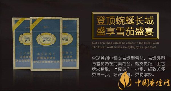 這款長(zhǎng)城雪茄煙茄體長(zhǎng)度94mm ,直徑7.88mm,環(huán)徑19.5mm,每個(gè)黃色的煙蒂上都印有藍(lán)色印花,其中兩條藍(lán)白色相間的環(huán)抱紋設(shè)計(jì)顯得長(zhǎng)城醇雅薄荷煙很有層次感,綜黃色的茄身小巧精致卻又顯得纖細(xì)而挺拔。#p#副標(biāo)題#e#