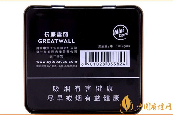 從背面看這款長城雪茄煙怎么樣,背面是褐色,不細看像黑色。盒背面標注著焦油含量,公司網(wǎng)址,客服電話,還有公司名稱介紹,整體看上去十分的簡潔。