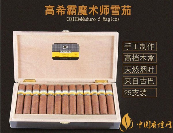 古巴雪茄高希霸魔術(shù)師是一款有品味的男人值得擁有的頂極雪茄,它口感濃郁,淡淡的花香讓品吸者沉醉。茄身結(jié)構(gòu)好,光澤度好且潤(rùn)度適宜,茄身為棕黃色稍偏深咖色,細(xì)看茄身紋路有些深咖色斑點(diǎn)。高希霸魔術(shù)師25支裝好抽嗎?下面由香煙網(wǎng)小編為大家介紹一下這款古巴雪茄高希霸魔術(shù)師怎么樣。