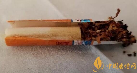 剖開濾嘴,從絲束的顏色變化來看,降焦孔是開在了絲束的前2/5部位。絲束的顏色變化均勻,降焦孔前段的顏色也不算太深,這個和添加了煙梗有比較大的關(guān)系,煙支自燃性良好,不用用力吸入,空氣的導(dǎo)入效果也不錯,煙氣的風味均衡保持良好。