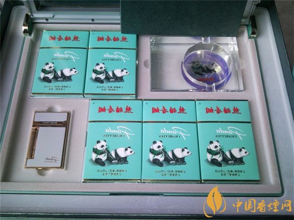 內(nèi)盒裝置很有特色,配有印有品牌LOGO熊貓圖案專用煙灰缸,還有特制的高檔白色融色的打火機(jī),錯位的呈列香煙方式非常新穎時尚。整體設(shè)計簡約,線條流暢,給人感受很舒適。
