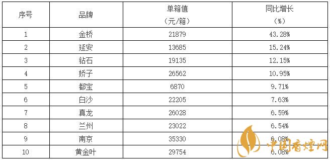 重點(diǎn)卷煙品牌2017年單箱前10排序表