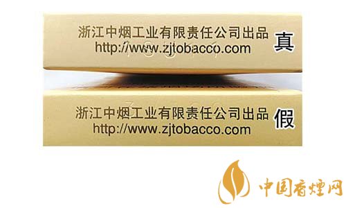 真煙鋼印為機(jī)器動(dòng)態(tài)打印,整體鋼印較深、間距不等,其位置與企業(yè)網(wǎng)址重疊;假煙鋼印一般為手工靜態(tài)打印,鋼印較淺,位置與文字重疊。