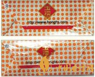 真煙所用的透明紙摩擦系數(shù)較低,透明度高,用手觸摸可感到其表面較光滑,紙質(zhì)較?。患贌熕玫耐该骷埐馁|(zhì)粗劣,摩擦系數(shù)較高,用手觸摸可感到較滯手,紙質(zhì)較厚。