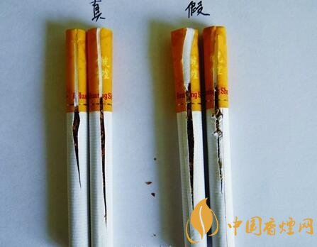 真品煙絲摻配均勻,煙絲顏色呈現(xiàn)出金黃色,油潤(rùn)性好,含煙末少;假煙煙絲劣質(zhì),煙絲顏色為淡黃色,煙絲摻雜質(zhì)多,煙梗煙末多,與真品煙絲結(jié)構(gòu)存在明顯差異。