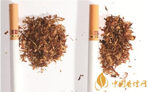 真煙煙絲切絲寬度與長度適中均勻,顔色呈橘黃色,光澤油潤性好,柔軟疏松,煙絲中含碎末少,煙絲結(jié)構(gòu)為葉絲、膨脹梗絲和造紙法再造煙葉;假煙制絲工藝粗糙,一般使用未經(jīng)處理的劣質(zhì)煙絲,色澤發(fā)暗無光澤,呈暗褐色,煙絲中含碎末較多,煙絲結(jié)構(gòu)一般為葉絲和沒有經(jīng)過膨脹處理的梗絲,無造紙法再造煙葉,煙絲結(jié)構(gòu)與真品特征存在明顯差異。