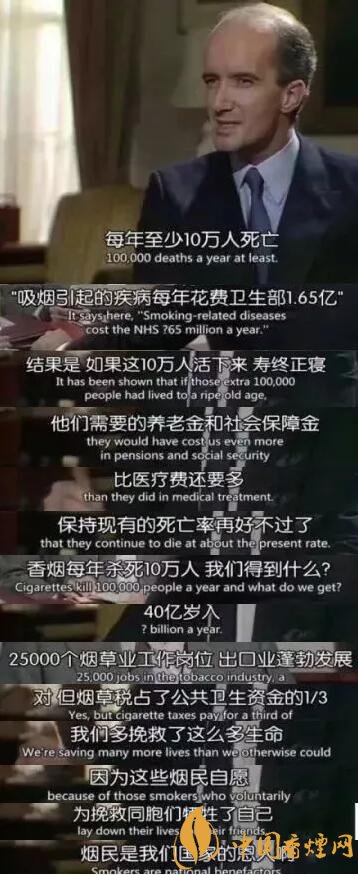 香煙行業(yè)的發(fā)展,除了繳稅方面貢獻(xiàn)極大之外,在緩解我國的社保壓力方面,也有很大的貢獻(xiàn)。給大家一個笑話,大家自己體會下,在英劇《是,首相》中,有這么一段對話,犀利而幽默: