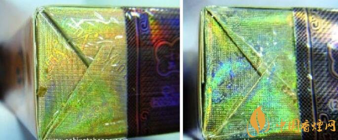 真品小盒商標(biāo)紙采用專屬高端特供進口材質(zhì)的紙張,適用于軟包硬化包裝工藝硬度材質(zhì),顏色以黃金色為主色;假煙小盒商標(biāo)紙是普通材料,紙質(zhì)低劣,比較薄、沒有硬度,顏色呈現(xiàn)出淡黃色,與真品顏色差異明顯。