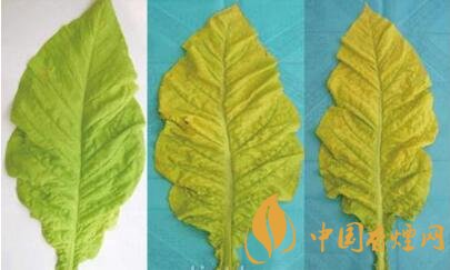 煙葉達(dá)到成熟時(shí),葉面的綠色逐漸消退,黃色程度增加,稱(chēng)為“落黃”。下部煙葉落黃成熟,葉尖和葉邊緣為黃色,整個(gè)葉面為綠黃色。中上部葉或比較厚的葉片成熟時(shí),葉面為淺黃至淡黃色,有黃色至黃白色成熟斑,葉尖和葉緣為黃白色。