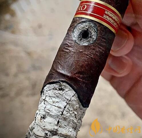 穿孔是雪茄中間燃燒過快,中間燃點進入雪茄內(nèi)部,超過周圍燃點之后又從另外一個地方竄出。