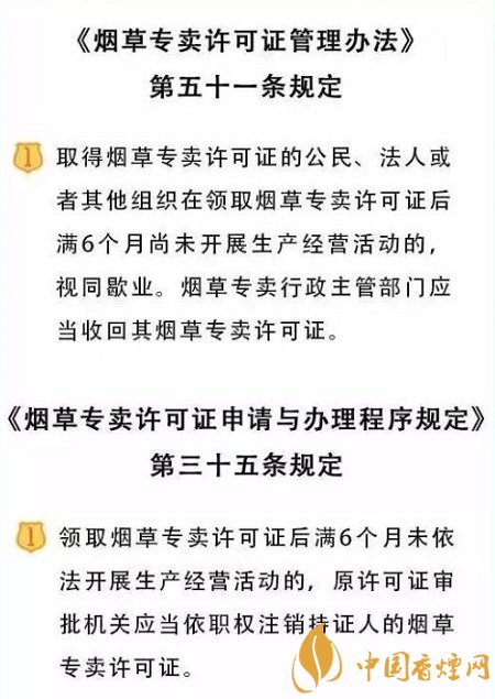 所以,新辦的煙草專賣零售許可證也是會“過期”的,老板們拿到了煙草證后,一定要在6個月內(nèi)訂購卷煙。如果因個人原因不能經(jīng)營卷煙,需向當(dāng)?shù)責(zé)煵菥旨皶r辦理歇業(yè)手續(xù),以免長期未經(jīng)營被注銷煙草證。