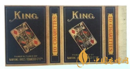二十世紀(jì)三十年代,南洋兄弟煙草公司出品了“王牌”卷煙。這張煙標(biāo)長(zhǎng)146MM,寬74MM。“王牌”即“KING”,撲克牌“K”牌面。該卷煙標(biāo)正版與副版的圖案一模一樣,煙標(biāo)中央向左傾斜45度的一張方塊“K”撲克牌,其上寫有大大的金色英文字母“KING”,其下為南洋兄弟煙草公司出品的英譯文。整幅煙標(biāo)沒(méi)有一個(gè)中文字,左右騎縫處則各印有紅色的“10 CIGARETTES”,即該卷煙規(guī)格為十支裝。方塊“K”牌面,就是凱撒大帝(朱利葉斯·凱撒),為羅馬共和國(guó)終生的執(zhí)政官,后出任高盧總督。四張花色的“K”牌面,南洋公司為何只取其方塊花色呢?因?yàn)樵谒膹埢ㄉ?ldquo;K”中,只有這張方塊“K”為凱撒大帝手持戰(zhàn)斧的側(cè)面像,其余三張人物均為正面像。可能廠商是為了標(biāo)新立異,從中亦能投射出其生產(chǎn)的卷煙與眾不同吧。如此設(shè)計(jì)的煙標(biāo),握于手掌,更像是拿了一副撲克牌,雌雄難辨,頗有玩味。