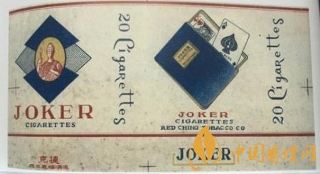 二十世紀(jì)四十年代,鴻順煙廠出品了“JOKER”卷煙,即“捷克”卷煙,此“捷克”非彼捷克(捷克斯洛伐克)。捷克煙標(biāo)只是“JOKER”的直譯音,而“JOKER”英意譯為“小丑”,也就是撲克牌中的百搭,大小怪,與捷克國(guó)家毫不相干。煙標(biāo)正版上橢圓形框,似覆在菱形花紋撲克牌的背面上,其內(nèi)為一個(gè)中世紀(jì)衛(wèi)士的肖像,并不是小丑的相貌。副版上畫(huà)有一個(gè)傾斜的藍(lán)色紙牌套子,套內(nèi)呼之欲出一些撲克牌,面上兩張分別是黑桃“A”和紅桃“K”牌面,即一副撲克牌中牌面點(diǎn)數(shù)的最大數(shù)和最小數(shù)。而在橋牌中,撲克牌“A”確是最大的。當(dāng)然,不同的撲克牌游戲,有其不同的游戲規(guī)則。鴻順煙廠設(shè)計(jì)“捷克”煙標(biāo),取百搭大小王及其這兩張牌面作為煙標(biāo)的主角,自有他的設(shè)計(jì)理念和商業(yè)用意,或許迎合當(dāng)時(shí)人們的喜好,或是市場(chǎng)競(jìng)爭(zhēng)的需要,在此,看者只能揣摩,不加定論。