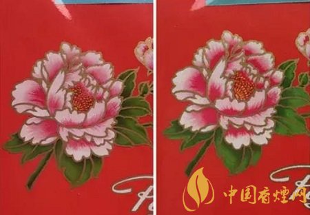 真品卷煙商標紙上的牡丹花瓣的粉紅色采用漸變技術(shù),顏色由深逐漸到淺,自然協(xié)調(diào),立體感強;假煙采用普通仿制技術(shù),粉紅色部分集中于一角,顏色搭配較為死板,立體感差。