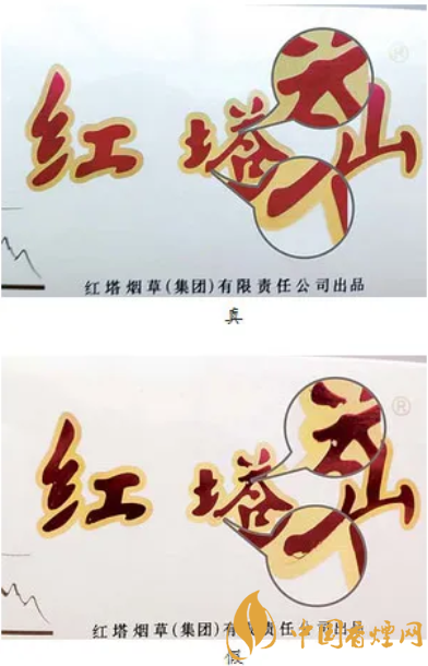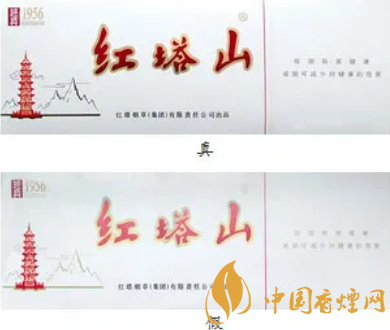真煙條盒上“紅塔山”三個(gè)字的顏色為暗紅色;假煙條盒上“紅塔山”三個(gè)字的顏色為鮮紅色。
