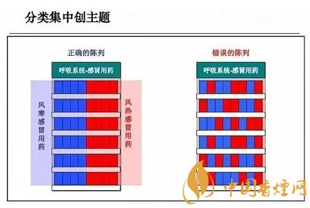 主題陳列是擴大陳列效果、增強顧客關注的較好辦法?;娟惲锌梢砸罁?jù)零售藥店自身商品分類的情況進行主題劃分,特殊陳列還可以增加更多感性的主題內(nèi)容來提升陳列的效果。如圖所示:
