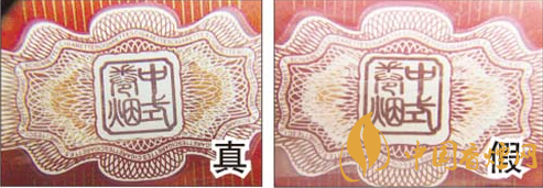 真煙燙金字體線條清晰、不漏金,金色部分成色純正;假煙燙金字體線條不清晰,有漏金現(xiàn)象,金色部分成色暗淡。