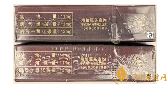 一、正面商標紙印刷工藝差異對比:真煙商標紙采用復合鐳射銀卡紙,膠印和絲網(wǎng)印刷,“和天下”字體采用壓凸燙金工藝,用手摸凹凸感較明顯,且字體筆畫較粗,商標紙上字體、拼音、花紋看上去有較清晰的豎線;假煙一般為高清掃描仿制印刷,“和天下”字體用手摸凹凸感不明顯,且字體筆畫較細,商標紙上拼音、花紋等處豎線較模糊。