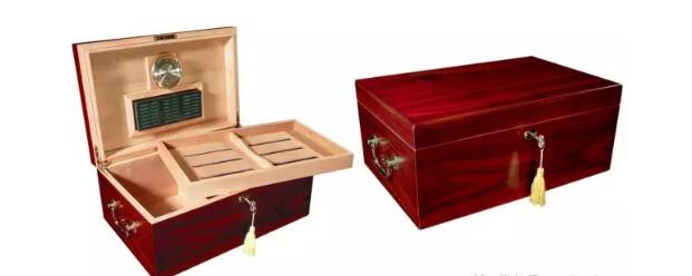 現(xiàn)在雪茄保濕盒一般采用后兩種方式,應(yīng)用最廣泛,也是最普通的是第二種,使用中等密度纖維板作為主體,膨脹度較小,用西班牙雪松木皮作為內(nèi)襯又能比較好的存儲(chǔ)雪茄。那些比較昂貴的雪茄保濕盒通常會(huì)采用第三種方式,內(nèi)襯是西班牙雪松木皮,主體結(jié)構(gòu)用的是硬木,給硬木皮上高光漆更容易些,同時(shí)也更有質(zhì)感。另外一個(gè)原因是很多硬木本身就是昂貴的。