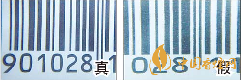 放大鏡下,真煙條形碼黑白顏色交界處平滑且鋸齒狀不明顯;假煙條形碼黑白顏色交界處鋸齒狀明顯。