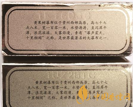 背面商標(biāo)紙印刷工藝差異對(duì)比:真品商標(biāo)紙采用銀卡紙,膠印印刷,背面鐳射防偽中圖案層次分明、瀑布立體感強(qiáng)、瀑布底部沒有明顯的黑色分割線;假煙背面鐳射防偽中圖案層次模糊、瀑布沒有立體感、瀑布底部有明顯的黑色分割線,商標(biāo)紙印刷工藝與真品特征存在明顯差異。