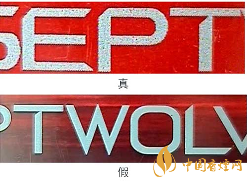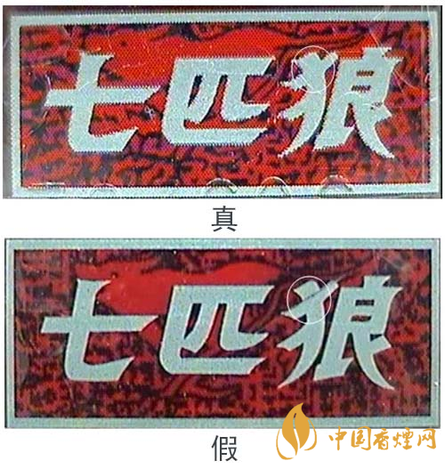 由于印刷方式的不同,真品“七匹狼”(豪情)條、盒上的中英文字體邊緣有鋸齒狀,假煙的字體邊緣光滑。