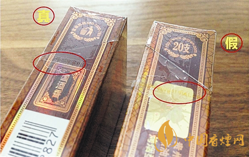 假冒:非常粗糙,方向錯(cuò)位,位于煙盒的左側(cè)。