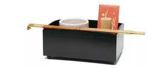 在利修時代,煙草盆并不會使用在茶道中。從江戶時代開始,宗旦、遠州、宗和一帶開始將其加入了茶道中。煙草盆是做什么的?到了江戶時代的后期,煙草盆已經(jīng)成為茶道中不可或缺的一步了。